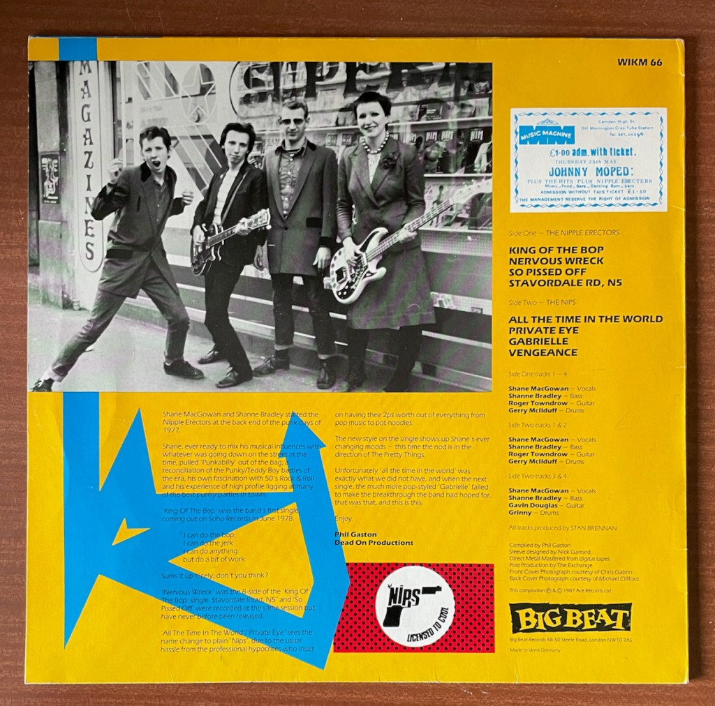a punkabilly outfit called… deep breath… The Nipple Erectors. Later shortened to The Nips, for some reason. This album is a compilation of their singles. Even in a punkabilly format, MacGowan was already showing a predilection for writing punchy, catchy songs. His lyrical skills certainly developed over time, though. For, as catchy as King of the Bop is, the lyrics aren’t exactly earth-shattering: